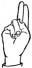 На ћирилици написано НИКОДИЈЕ ЦРНОГЛАВАЦ састоји се из 18 слова [?]. Исписано ћириличном једноручном азбуком за глувонеме: